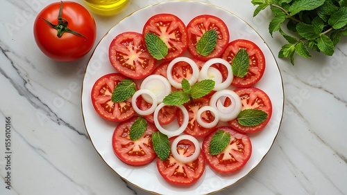 Fresh Tomato and Onion Salad with Mint on Marble, Toba Tek Singh