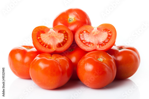 Fresh tomatoes isolated on white.