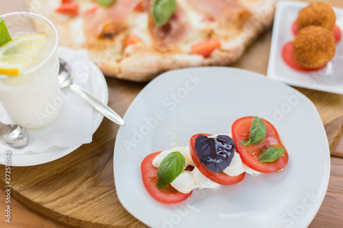 Fresh tomatoes with cheese and basilio