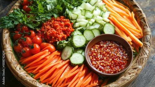 Fresh Vegetable Platter with Spicy Dip Arrangement