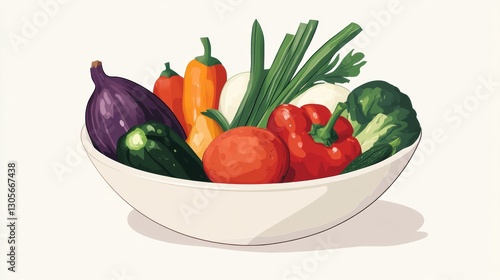 Fresh vegetable salad served in bowl. Vector cartoon illustration isolated on white background