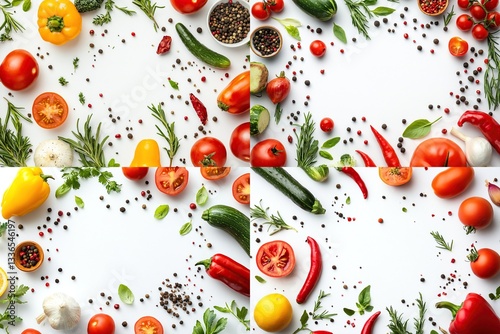vegetable, spice, food, collage, tomatoes, pepper, courgette, herb, garlic, rosemary, basil, parsley, chili, peppercorn, cooking, ingredient, healthy, diet, nourishment, fresh, colourful, vibrant, background, texture, design, culinary, cookery, receipe, meal, dinner, lunch, breakfast, organic, natural, produce, market, farm, garden, white, red, green, yellow, orange