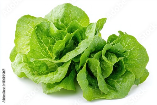 Fresh vibrant romaine lettuce on bright white scene showcasing nutritious natural green vegetable from garden