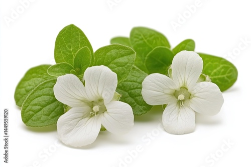 Fresh white flowers with vibrant green leaves