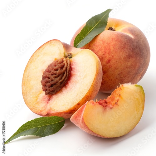 peach, peach, fruit, fresh fruit, juicy, pit, macro, texture, food, ingredient, healthy, nourishment, organic, natural, ripe, sweet, summer fruit, vibrant, isolated, white background, clean, minimal, studio, commercial, realistic, photorealistic, hi-res, botanical, produce, vegetarian, vegan, edible, bright, still life, advertising, catalog, design
