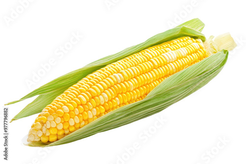 Fresh yellow corn on the cob isolated on transparent background. Perfect for food, agriculture, and nutrition concepts. High-quality image.