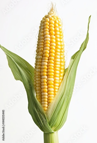 Fresh Yellow Corn on the Cob with Green Husk on White Background Perfect for Summer Dishes and Healthy Eating Lifestyle