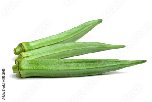 Fresh young okra isolated on white background
