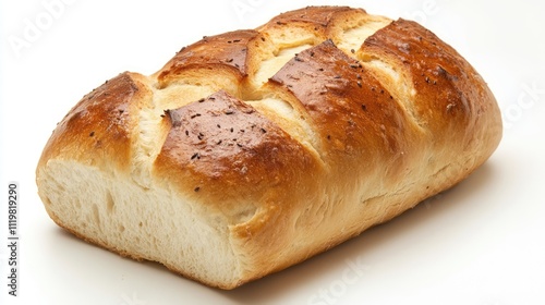 Freshly baked artisan loaf bread with a golden crust and soft interior perfect for culinary display and food photography.
