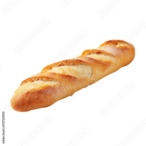 Freshly Baked Baguette on White Background with Crisp Crust and Fluffy Interior Ideal for Culinary and Restaurant Concepts
