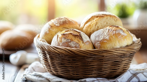 Freshly Baked Bread in a Rustic Kitchen Basket
