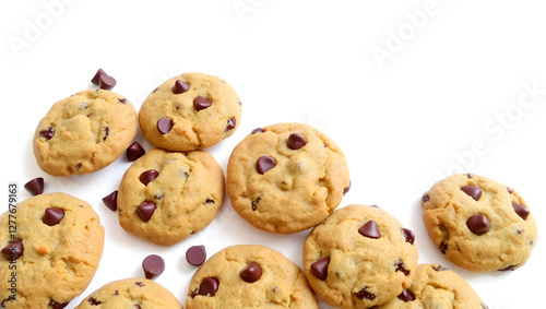 golden brown, white background, delicious, appetising, dessert, snack, homemade, baking, food photography, closeup, chocolate chips, baked goods, pastry, confectionery, sweet tooth, comfort food, bakery