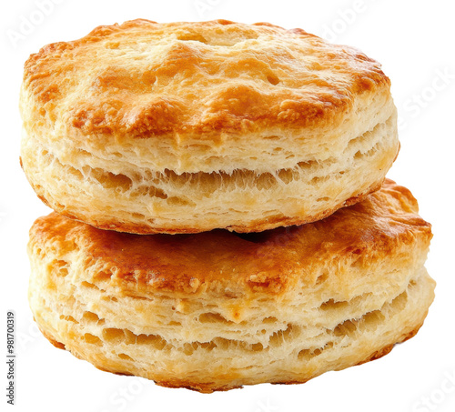 Freshly baked flaky biscuits stacked on a plate isolated on transparent background