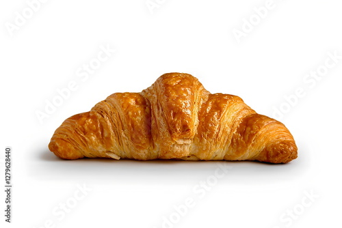Freshly baked golden croissant with a flaky texture on a clean white background