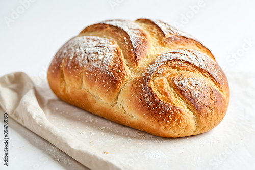 Freshly Baked Loaf of Bread on White Background