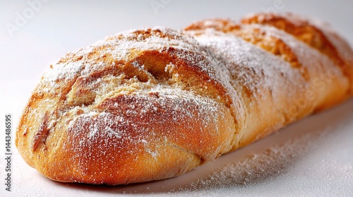 Freshly Baked Loaf of Bread with Dusting of Flour on Surface