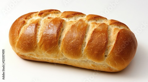Freshly Baked Loaf of Soft Golden Bread on a Clean White Background Ideal for Culinary Arts, Food Photography, and Delicious Meal Presentations