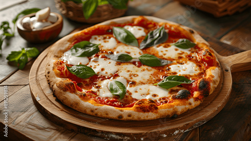 margherita, pizza, freshly, baked, charred, crust, basil, mozzarella, rustic, italian, food, epicure, delicious, traditional, homemade, savoury, meal, culinary, authentic, cheesy, crispy, vibrant, fresh, dinner, lunch, comforting, pizzeria, artisanal, classic