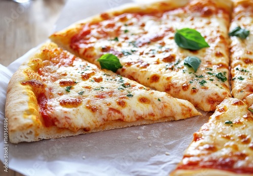 Freshly Baked Margherita Pizza with Melted Cheese and Basil Garnish, Highlighting the Crispy Crust and Savory Tomato Sauce