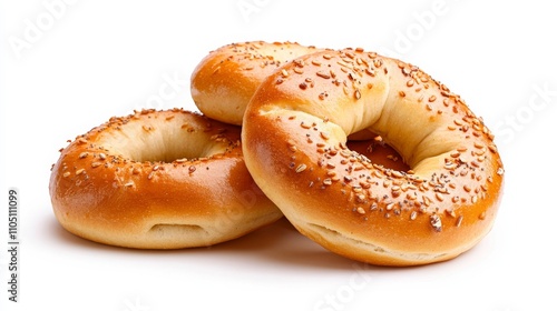 Freshly Baked Sesame Seed Bagels: A trio of golden-brown bagels, studded with sesame seeds, capture the essence of morning freshness and delightful indulgence.