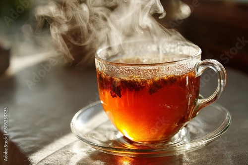 Freshly brewed tea warms the soul in a cozy setting with steam rising from the cup