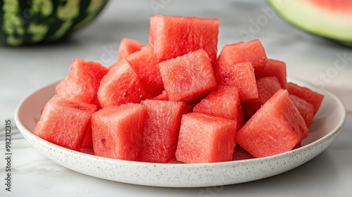 watermelon, fruit, summer, snack, healthy, refreshing, sweet, red, cube, plate, food, diet, juicy, organic, natural, ripe, fresh, delicious, vibrant, closeup, texture, alimentary, preparation, serving, catering, epicure, picnic, background, harvest, seasonal, dessert, cookery, culinary, vitamin, slice, wholesome, display, feast, clean, bright, colourful, aesthetic, photo, meal, freshness