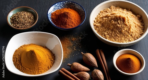 freshly, ground, spice, bowl, next, their, whole, form, contrast, food, spice, powder, curry, pepper, bowl, ingredient, seasoning, cooking, brown, paprika, spoon, aroma, closeup, white, red, spicey, isolated, hot drink, aromatic, cinnamon, herb, condiment
