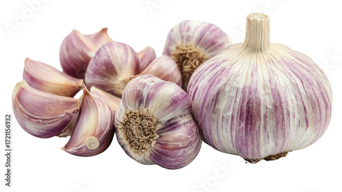 freshly harvested garlic bulbs and cloves, perfect ingredient for culinary creation. the essence of flavor and aroma. Isolated On Transparent and White Background