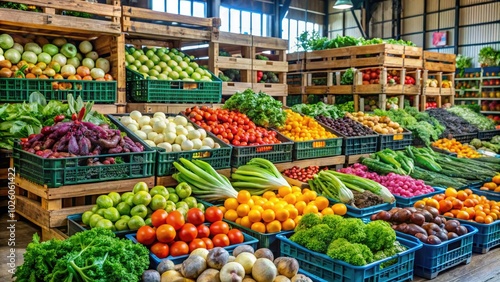 Freshly harvested vegetables in the warehouse burst with colors and shapes, displaying a delightful variety of textures that celebrate the richness of nature's offerings.