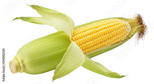 corn, cob, maize, vegetable, food, fresh, healthy, nourishment, agriculture, harvest, plant, kernel, husk, leaf, green, yellow, organic, raw, sweet corn, summer, farm, ripe, natural, delicious, detail, closeup, isolated, single, whole, uncooked, ingredient, vegetarian, vegan, diet, produce, eating, snack, meal, side, cooking, culinary, texture, pattern, growth, season, field, garden, farming, crop