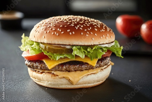 Freshly made burger with crisp lettuce, juicy tomato, and melted cheese