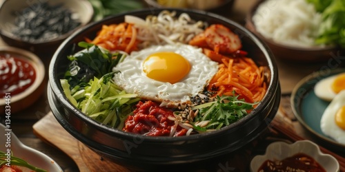 freshly, korean, sauce, traditional, table, food, bowl, asian, korea, rice, dinner, delicious, dish, egg, mixed, meal, vegetable, healthy, meat, lunch, kimchi, cooking, beef, cookery, hot, carrot, spicey, spinach, colourful, germinating, eatery, korean food