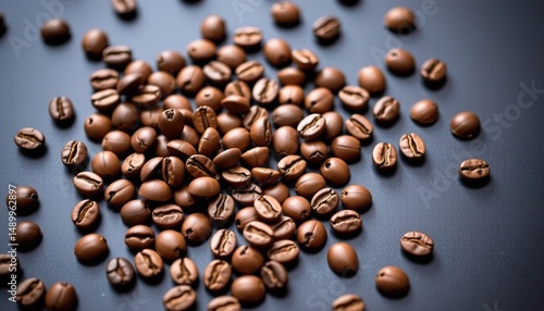 Freshly Roasted Coffee Beans Spread Out on a Dark Surface Ready for Brewing and Enjoyment