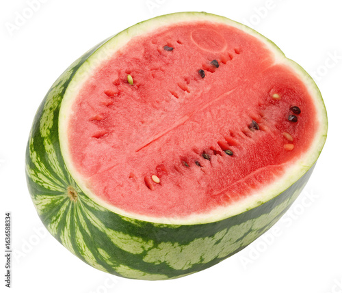 Freshly sliced watermelon showing vibrant red juicy interior with seeds for summer refreshment