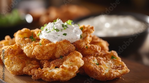 Fried cauliflower slices with dip, 16:9