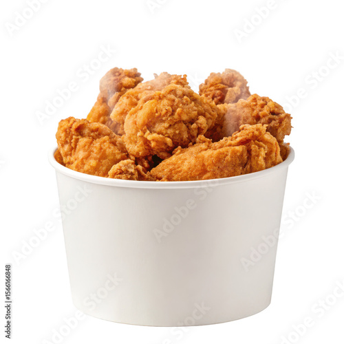 Fried chicken in paper bucket on transparent background