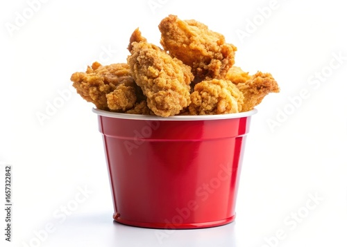 Fried Chicken Tenders in a Small Red Bucket