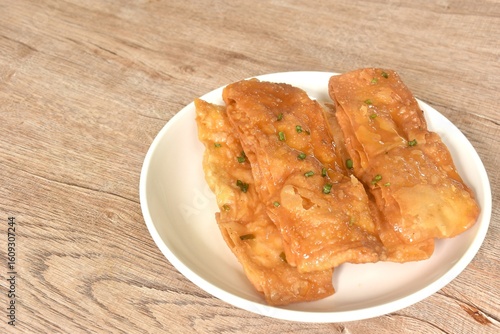 fried crispy sweet southern flat bread or roti dressing sweetened condensed milk on dish