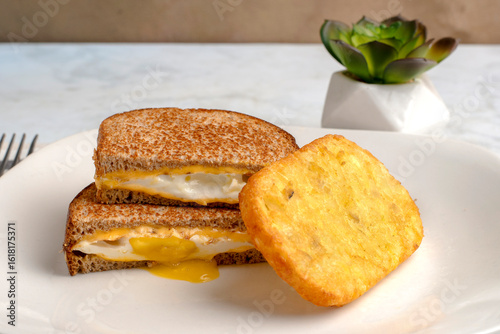 fried egg melt sandwich with hash browns