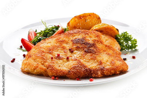 pork meat, chop, steak, beef, grilled, steak, schnitzel, fried, beefsteak, meat, food, roast, dinner, sirloin, chips, baked, meal, vegetable, salad, bar-b-q, roasted, plate, chop, grill, tomatoes, tomatoes, potato, rocket, potato, lettuce, cooked, dining, vegetable, horizontal, eatery, portion, background, poultry, white