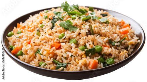 fried, rice, bowl, isolated, transparent, dish, vegetable, cooking, eating, food, ingredient, asian, cookery, meal, lunch, dinner, plate, background, cut-out, single, object, closeup, detail, grain, carrot, pea, cilantro, parsley, soy, sauce, side, view, studio, shot, nobody, 1, indoor, eatery, cafes, diet, nourishment, healthy, delicious, tasty, fresh, homemade, vegetarian