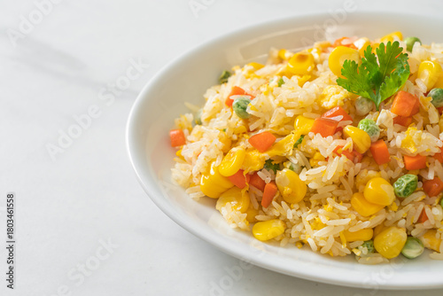 fried rice with mixed vegetable (carrot, green bean peas, corn) and egg