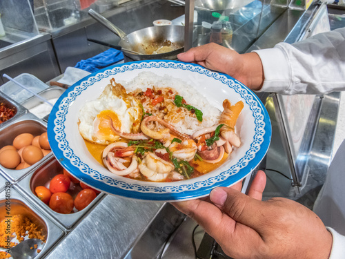 Fried rice with seafood and basil is a delicious and flavorful dish that combines the freshness of seafood with the aromatic taste of basil. The combination of succulent shrimp, tender squid, plump.