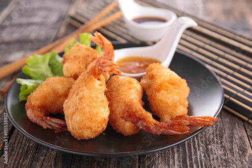 fried, shrimp, seafood, breaded, cookery, culinary, sauce, asian, food, dinner, meal, coconut, healthy