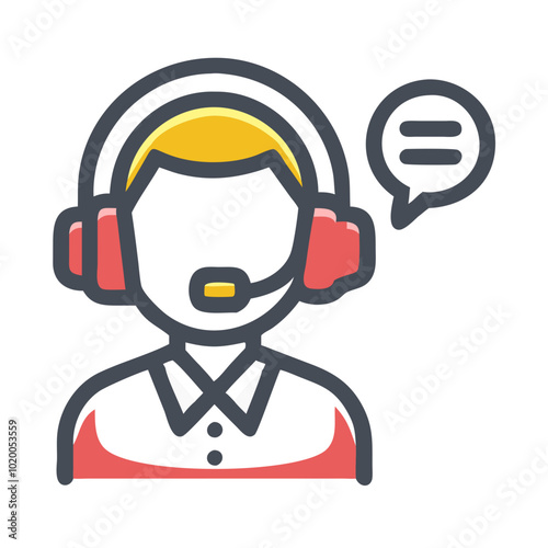 Friendly Customer Service Representative Icon with Headset and Speech Bubble