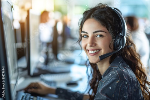 friendly, customer service, representative, smiling, computer, copy, space, professional, support, assistance, helpful, approachable, office, interaction, service, communication, smiling face, team, happy, client, engagement, warm, positive, desk, technology, computer-screen, personal, attentive, efficient, cheerful