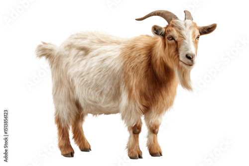 goat, caprine, farm animal, farm animal, mammal, white, horned, beard, ear, hoof, tail, cute, curious, animal, pet, rural, agriculture, standing, full body, studio shot, cut-out, isolated, high-quality, herbivore, ruminant, mountain goat, billy goat, nanny-goat, children