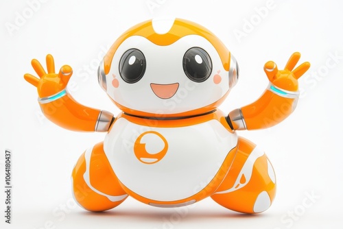 robot, toy, cute, character, friendly, orange, smiling, playful, design, technology, modern, childlike, happiness, fun, android, artificial, interactive, contraption, innovation, vibrant, cheerful, wave, pose, adorable, education, invention, creativity, futuristic, expressive, joyful, hand, eye, engaging, bright, emotional, curious, entertainment, robotic, personality, imaginative, colourful, tech, science