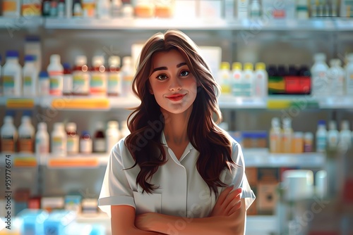 apothecary, pharmacy, health care, medicine, smiling, professional, shelf, bottle, product, customer service, woman, young adult, friendly, assistance, prescription, wellness, health, consultation, beauty, confidence, service, retail, medication, support, advice, community, caring, approachable, organised, pharmaceutical, healthcare professional, smiling face, service industry, missy