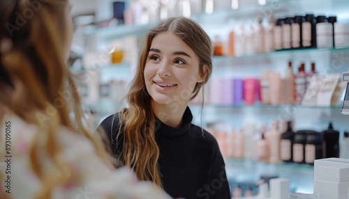 salesgirl, beauty product, client, friendly, cosmetic, store, product, beauty